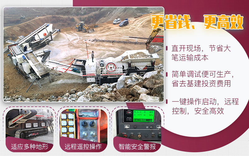 大型磕石制砂一體機(jī)是通過(guò)輪胎式或履帶式車架與鄂破、反擊破、錘破、圓錐破、制砂機(jī)、振動(dòng)篩靈活配置,整體搭配緊湊,油電兩用,配有PLC智能電控箱,可遠(yuǎn)程控制,根據(jù)客戶的實(shí)際生產(chǎn)狀況不同,配置方案多種多樣,比如以下客戶的方案。